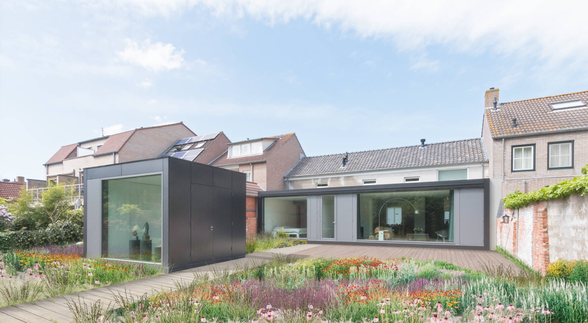 Wij hebben het welzijn van de gebruikers hoog in het vaandel en duurzaamheid speelt dan ook een belangrijke rol in ons werk. Enerzijds in de praktische zin, waarbij we ernaar streven zoveel mogelijk hernieuwbare bouwmaterialen toe te passen en de energievraag zo laag mogelijk te houden. Dat doen we door het gebruik van onder anderen zonnepanelen, warmtepompen en warmteterugwinsystemen, die we op zo’n manier integreren dat ze onderdeel worden van de architectuur. We houden onszelf op de hoogte van de ontwikkelingen en laten ons regelmatig bijpraten door leveranciers. Anderzijds streven we naar duurzaamheid door ontwerpen te maken die esthetisch en praktisch lang mee gaan.