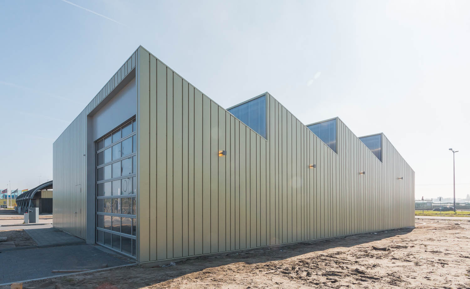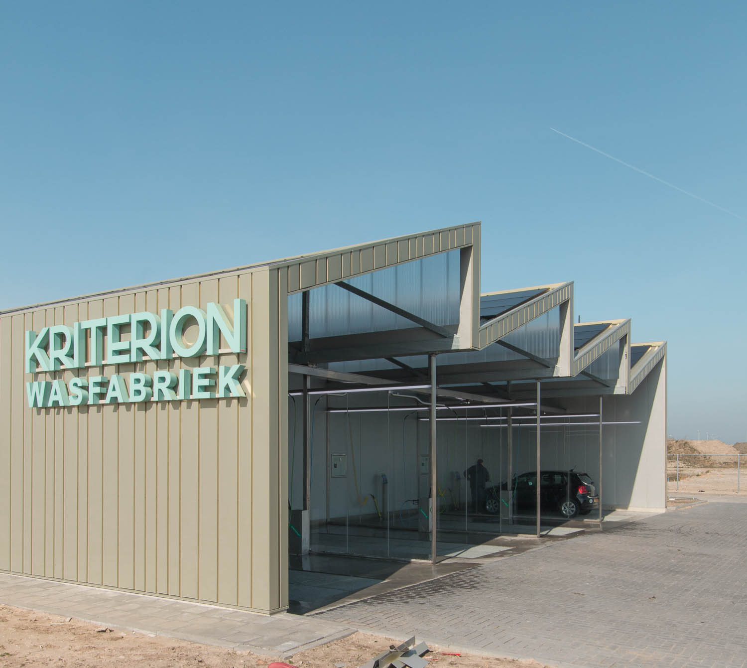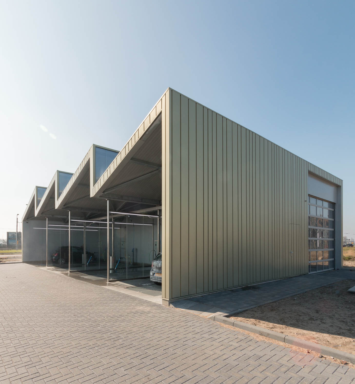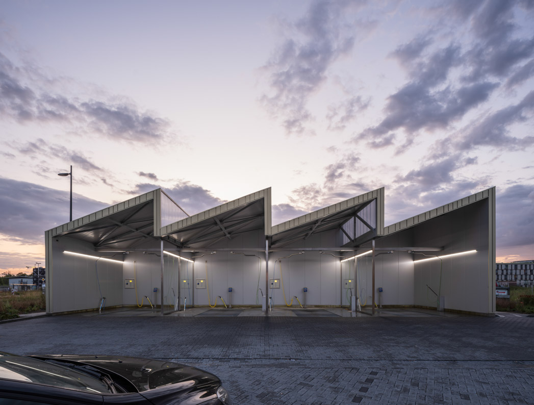 De vormgeving van de nieuwe wasstraat staat in het teken van duurzaamheid, met een getand dak voor de bouwkundige integratie van de zonnepanelen. “Het eenvoudige gebouw krijgt hierdoor een iconische vorm met een sterk ritme, dat aansluit op de functionele indeling met 4 wasboxen.” Aldus Architect Bas Vogelpoel. Het verlichtingsplan accentueert dit ritme en de functionele verdeling.