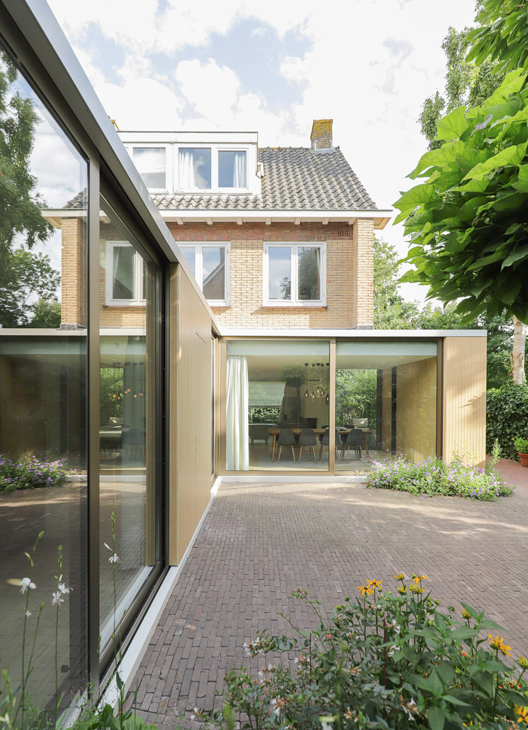 W.I.P.: Duurzame uitbouw aan een gezinswoning in Abcoude. Uitgewerkt in houtbouw met bijpassende brons geannodiseerde aluminium puien. Door de woning deels aan de zijkant uit te bouwen was het mogelijk een groter oppervlak aan de achterzijde te realiseren. Hiermee veranderd een zeer standaard doorzonwoning op de begane grond in een villa met een veelzijdige oriëntering.